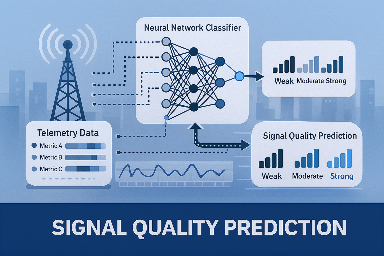 A neural network classifier that predicts equipment signal quality using telemetry data.